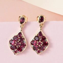 Rhodolith Granat-Ohrringe, 925 Silber Vergoldet Ca. 4,07 Ct