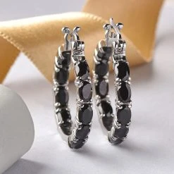 Schwarze Zirkonia-Creolen, Silberfarben Ca. 3,65 Ct