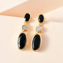 Schwarzer Turmalin Ohrringe, Goldfarben Ca. 25.00 Ct