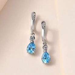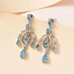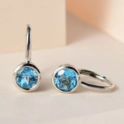 Schweizer Blautopas Ohrringe, 925 Silber Platiniert, Ca. 1.89 Ct