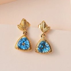 Schweizer Blautopas Ohrringe 925 Silber Gelbgold Vermeil Ca. 2,68 Ct.
