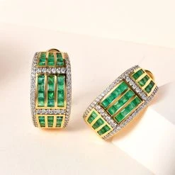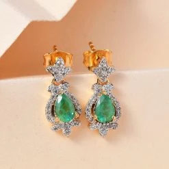 AAA Kagem Sambische Smaragd Und Weiße Zirkon Ohrringe, 925 Silber Gelbgold Vermeil Ca. 1.15 Ct