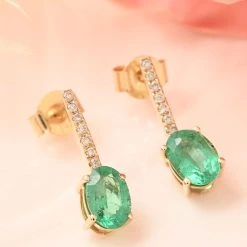 AAA Kagem Sambischer Smaragd, Weißer Diamant, Zertifiziert Und Geprüft, Ohrringe 585 Gold Ca. 1.75 Ct