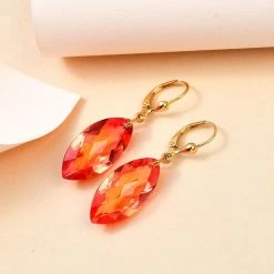AAA Padparadscha Quarz Triplette Ohrringe, 925 Silber Vergoldet Ca. 27.37 Ct
