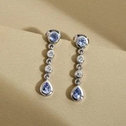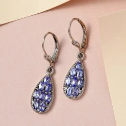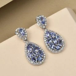 Tansanit-Ohrringe, 925 Silber Platiniert Ca. 3.21 Ct