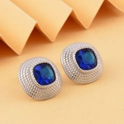 Tansanit Zirkonia Ohrringe, Reiner Edelstahl, Ca. 7.50 Ct
