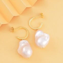 Weiße Barockperle Ohrringe 925 Silber Gelbgold Vermeil