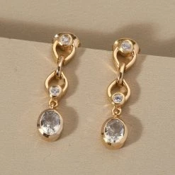 AAA Premium Brasilianischer Heliodor, Weißer Zirkon Ohrringe, 925 Silber Gelbgold Vermeil Ca. 2.38 Ct