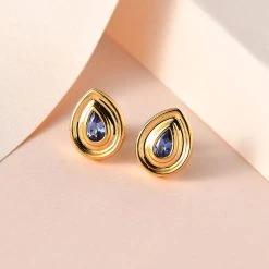 AAA Tansanit Ohrringe, 925 Silber Gelbgold Vermeil Ca. 0.44 Ct