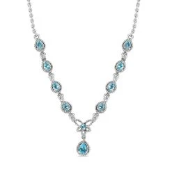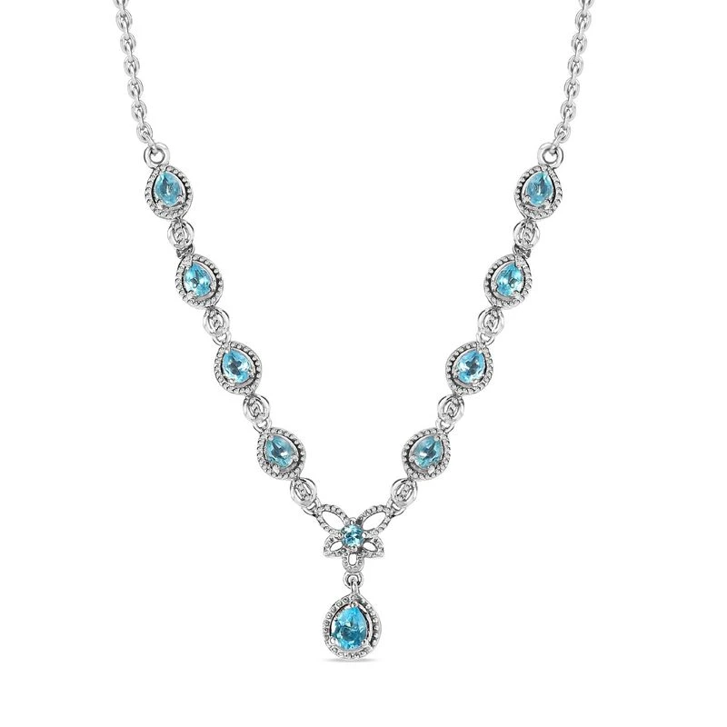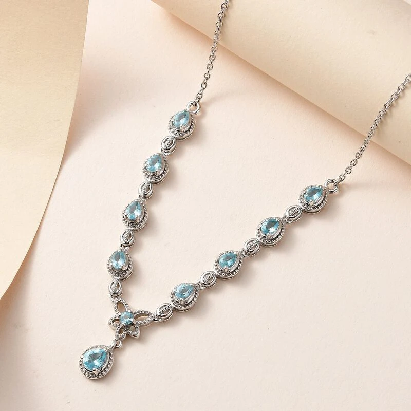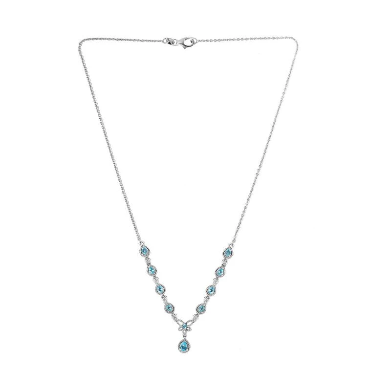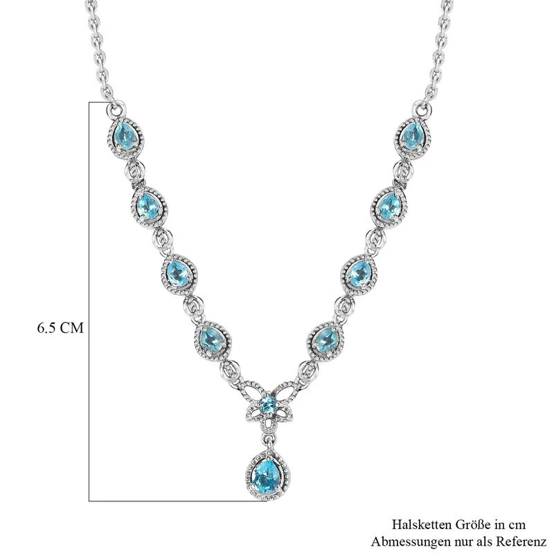 Paraiba-Apatit Halskette Ca. 45 Cm 925 Silber Platiniert Ca. 1.70 Ct