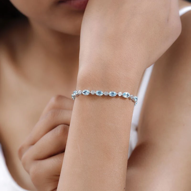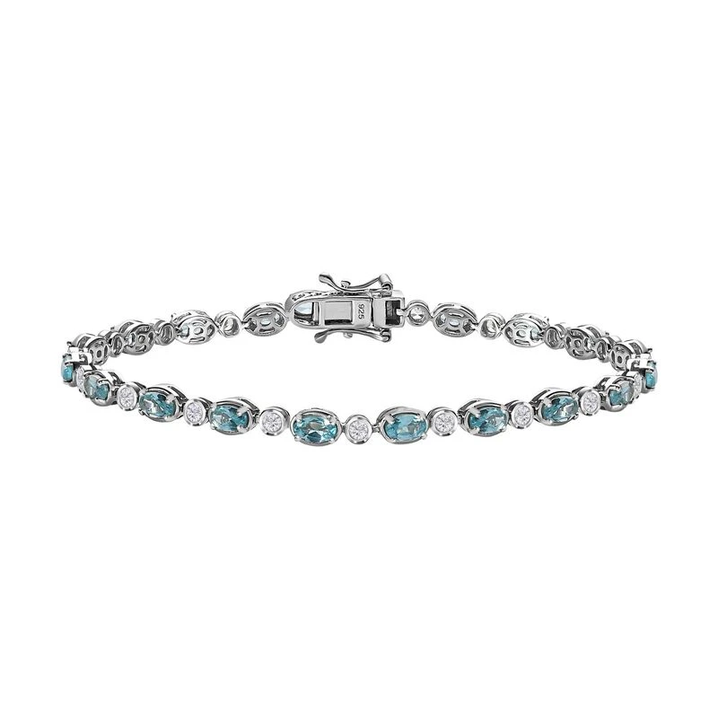 Paraiba-Apatit, Weißes Zirkon Armband, Ca. 20 Cm, 925 Silber Platiniert Ca. 5.32 Ct