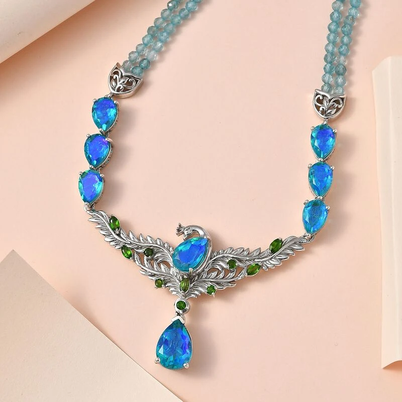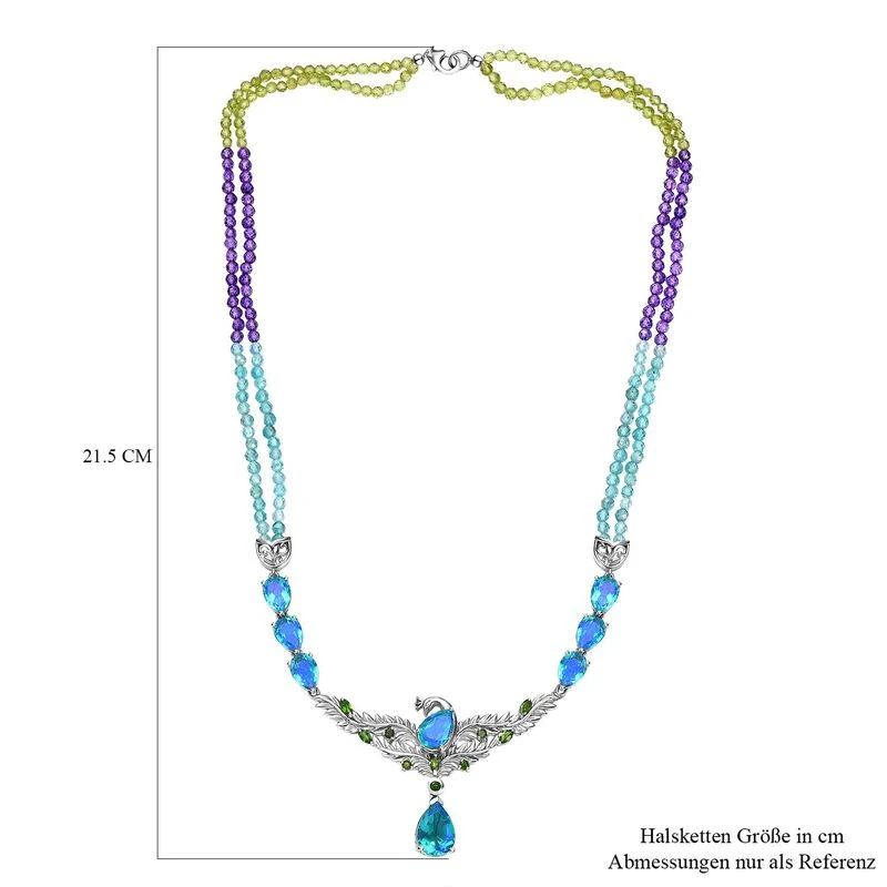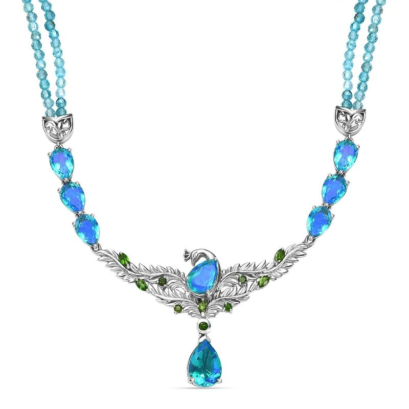Paraiba Pfau Triplet Quarz Halskette Ca. 50 Cm 925 Silber Platiniert Ca. 82.13 Ct