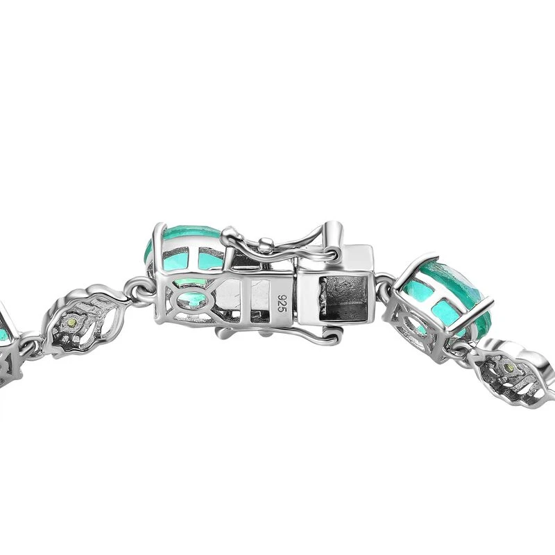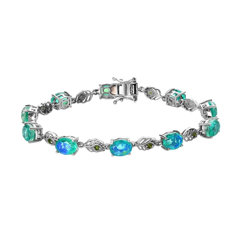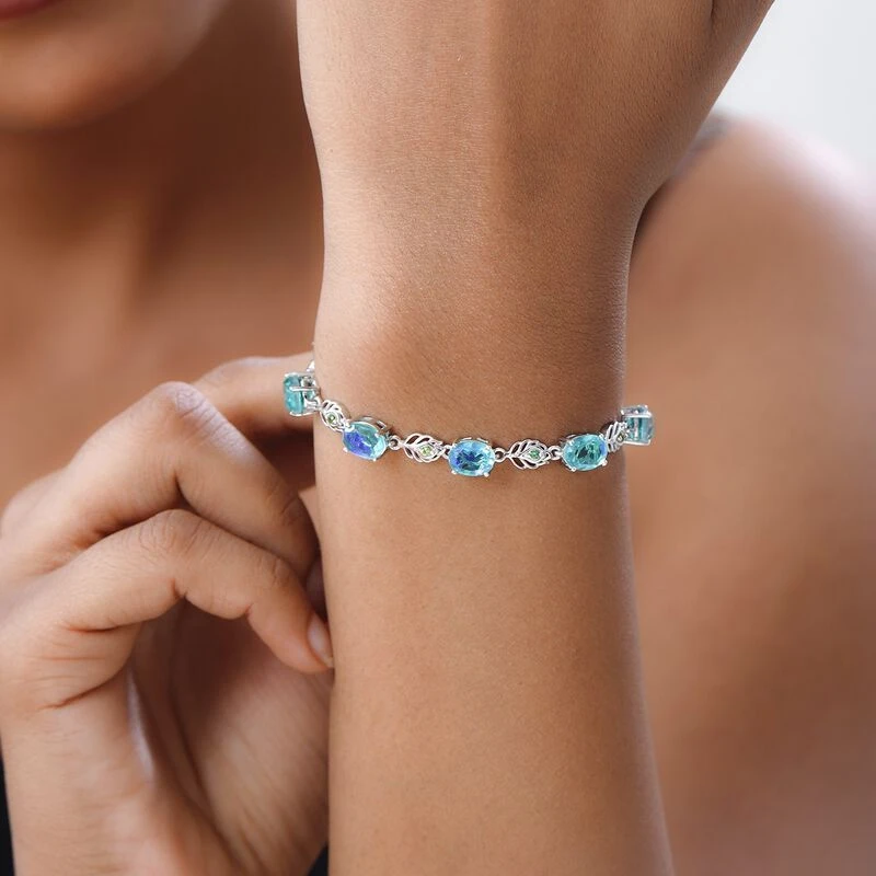 Pfau Triplette Quarz, Natürliches Chromdiopsid Armband, Ca. 19 Cm 925 Silber Platiniert Ca. 15.09 Ct
