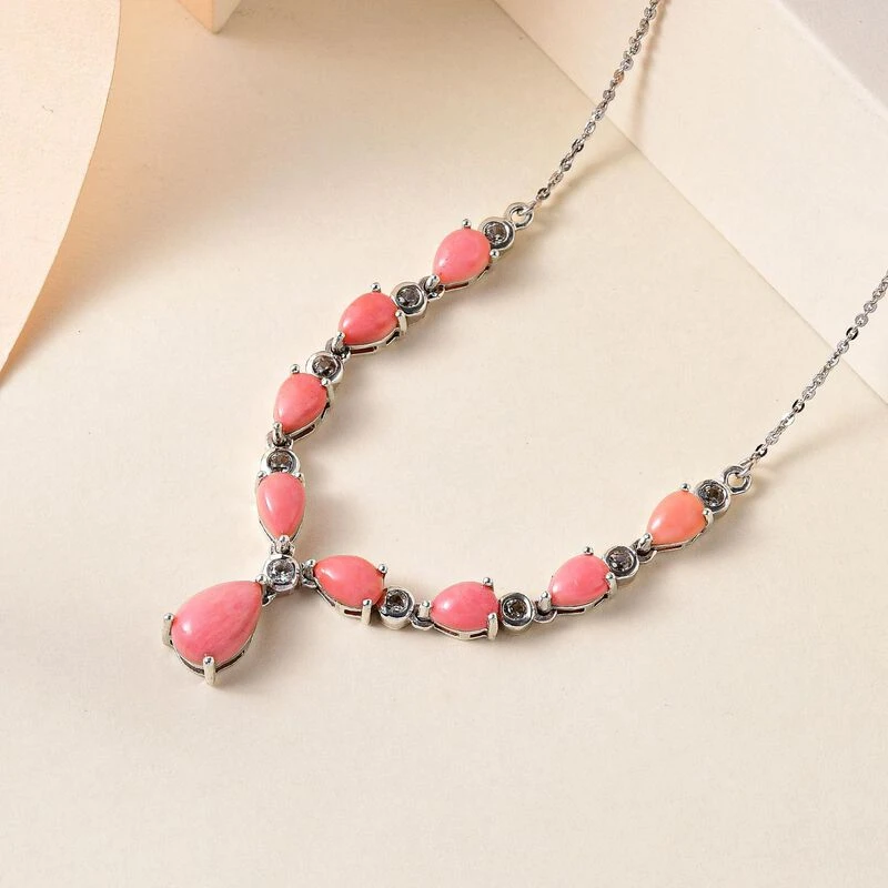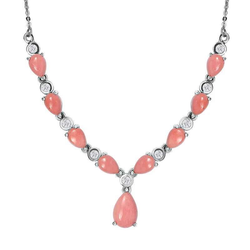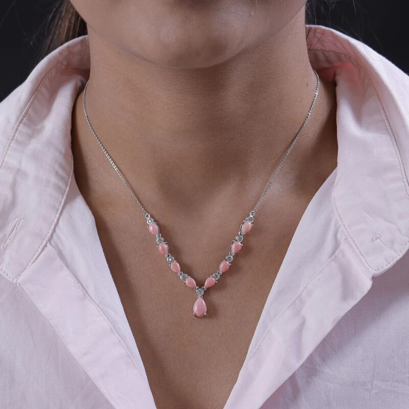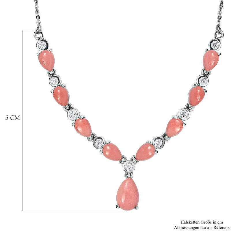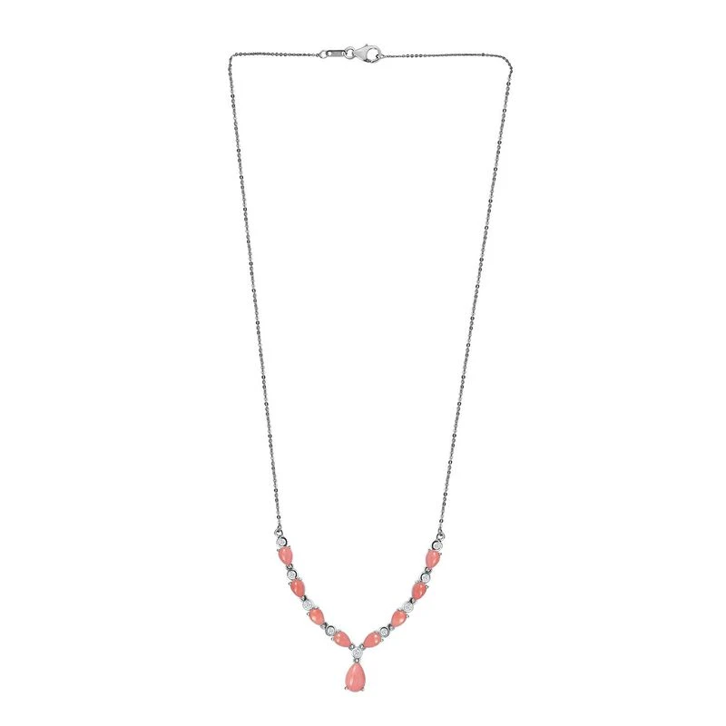 Pfirsich Opal Halskette, Ca. 45 Cm, 925 Silber Platiniert Ca. 3.83 Ct
