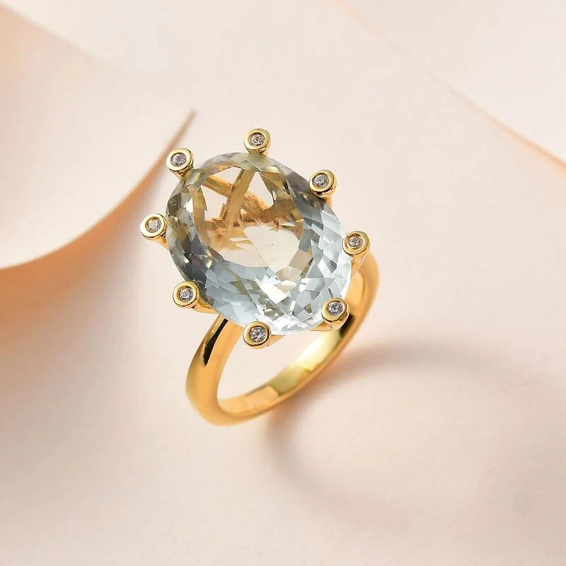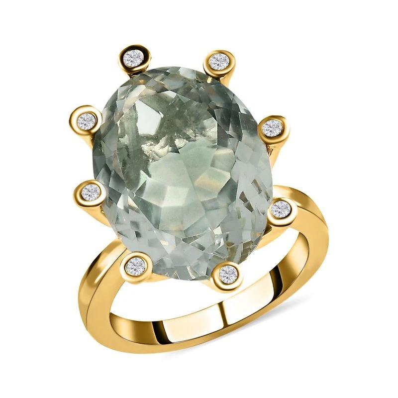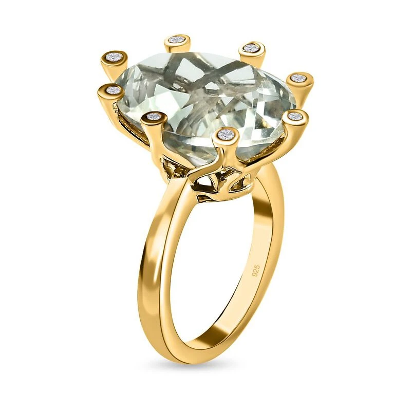 Prasiolite, Weißer Zirkon Ring, 925 Silber Vergoldet (Größe 16.00) Ca. 12.39 Ct