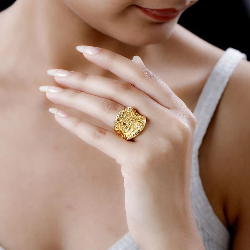 Reines Messing Vergoldet Ring, (Größe 18.00) Ca. 12,83g