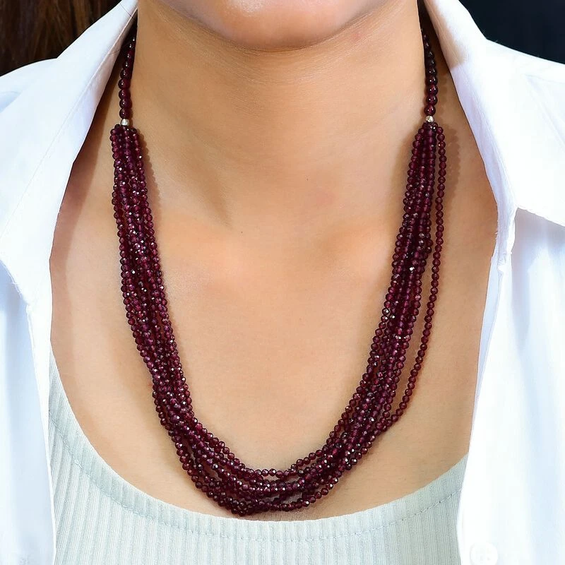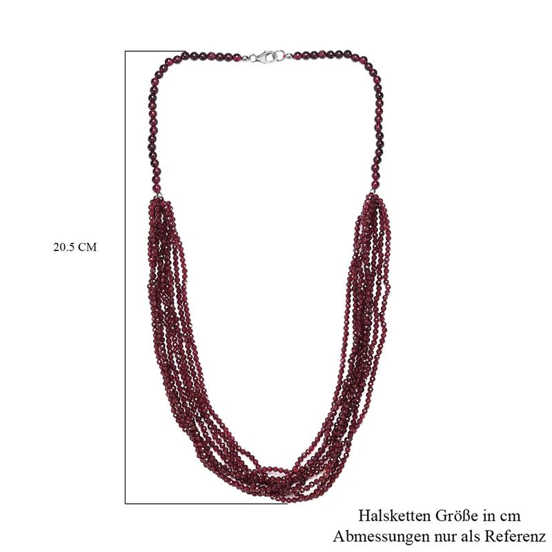 Rhodolith Granat Mehrsträngige Halskette, Ca. 50 Cm 925 Silber Ca. 100.00 Ct