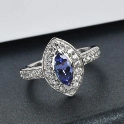 Tansanit Und Zirkon Ring 925 Silber Platiniert (Größe 16.00) 1,00 Ct