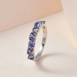 Tansanit-Ring, 925 Silber Platiniert (Größe 21.00) Ca. 2.07 Ct