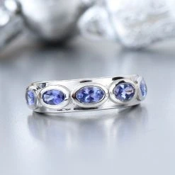 AA Tansanit 5 Stein Ring 925 Silber Platiniert (Größe 19.00) Ca. 1,10 Ct