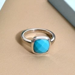 Amerikanischer, Natürlicher Sleeping Beauty Türkis-Ring, 925 Silber Platiniert (Größe 16.00) Ca. 2.05 Ct