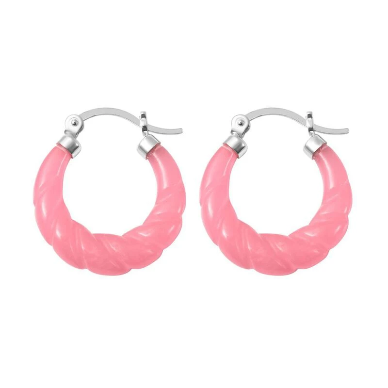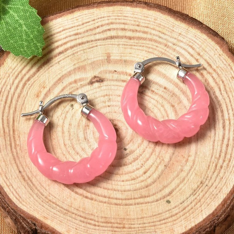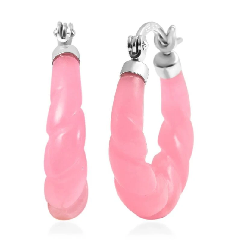 Rosa Jade Ohrringe 925 Silber Rhodiniert Ca. 18.50 Ct