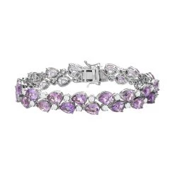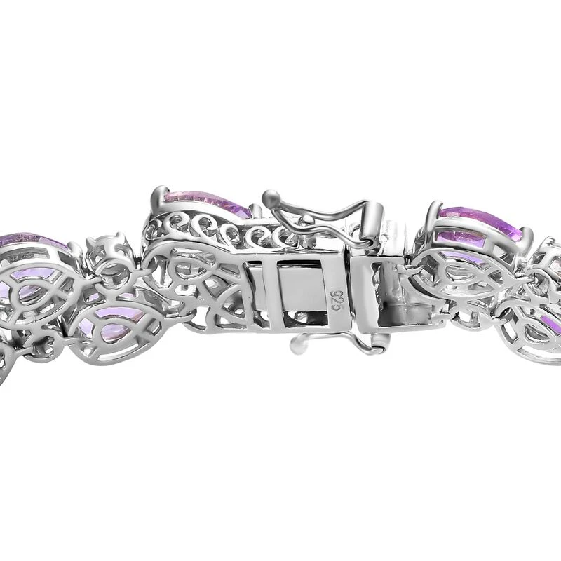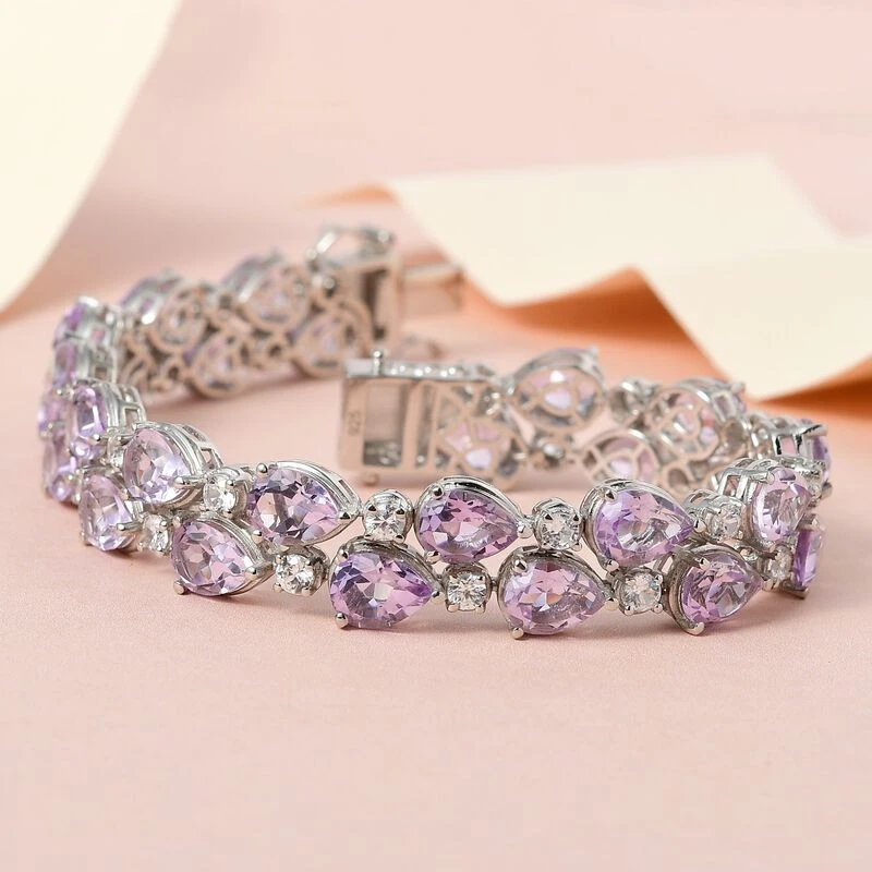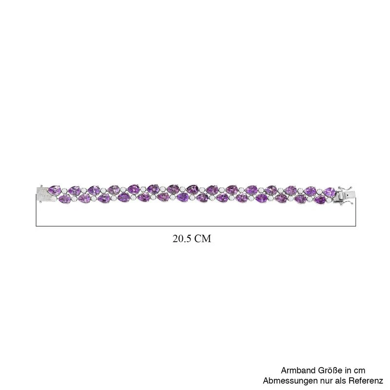 Rose De France Amethyst, Weißer Zirkon Armband Ca. 20 Cm 925 Silber Platiniert Ca. 35.93 Ct