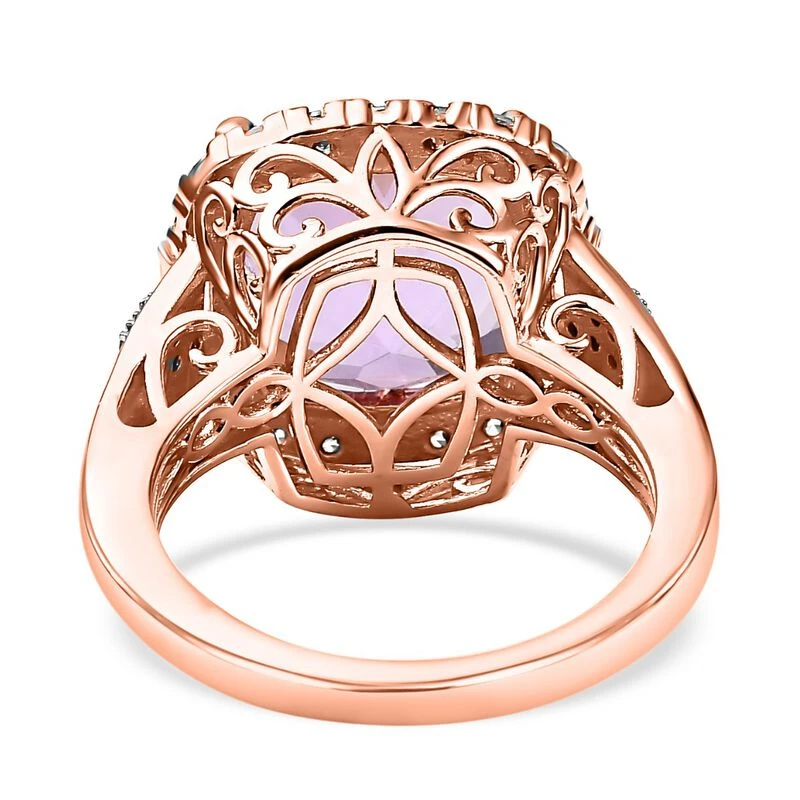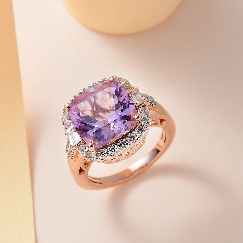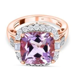 Rose De France Amethyst, Weißer Zirkon Ring, 925 Silber Rosévergoldet, (Größe 20.00) Ca. 8.02 Ct