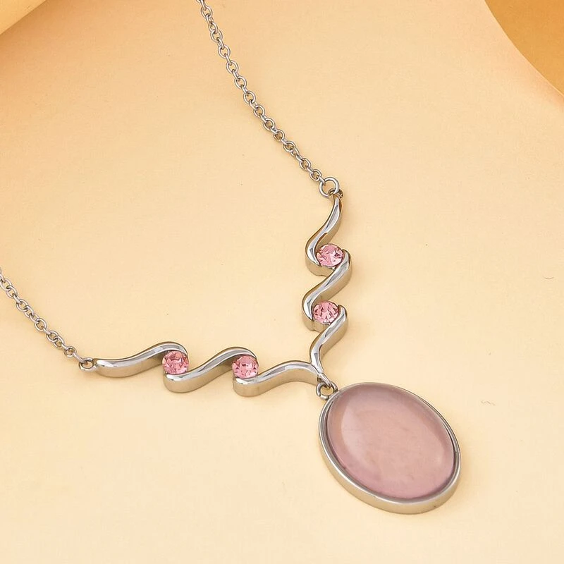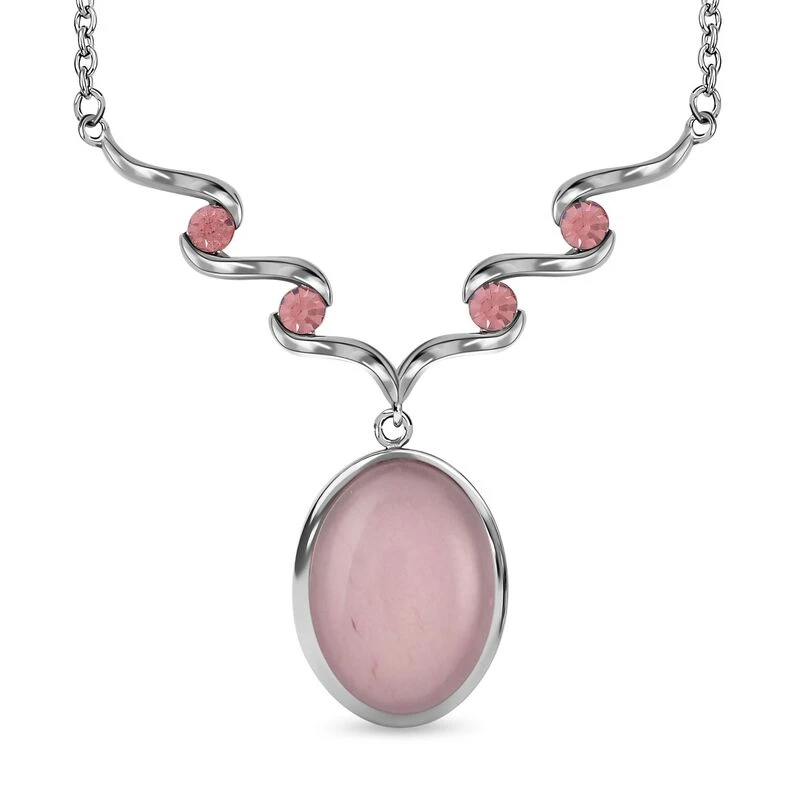 Ein wunderschönes, wirbelartiges Muster ist mit 4 rosa Kristallen und dem femininen Farbton eines Rosenquarzes verziert. Diese Halskette definiert Eleganz für Sie und ist ein Must-have!