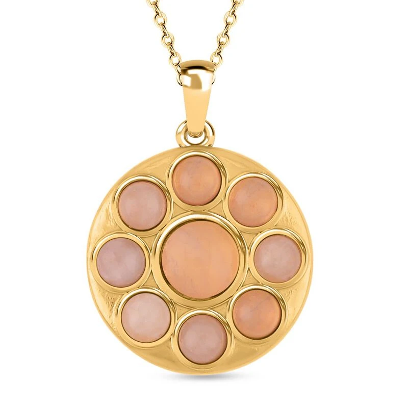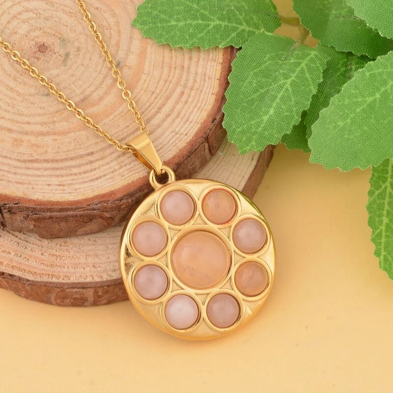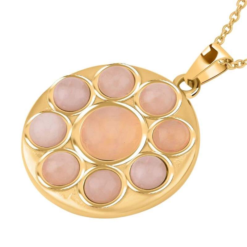 Rosenquarz Halskette Ca. 50 Cm Reiner Edelstahl IP-Gelbbeschichtung Ca. 5.00 Ct