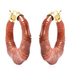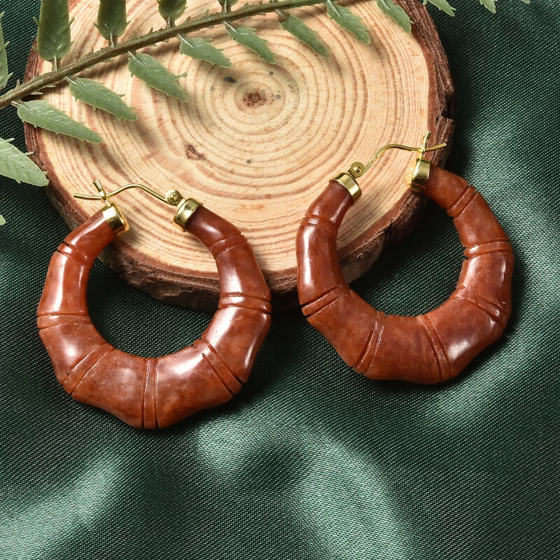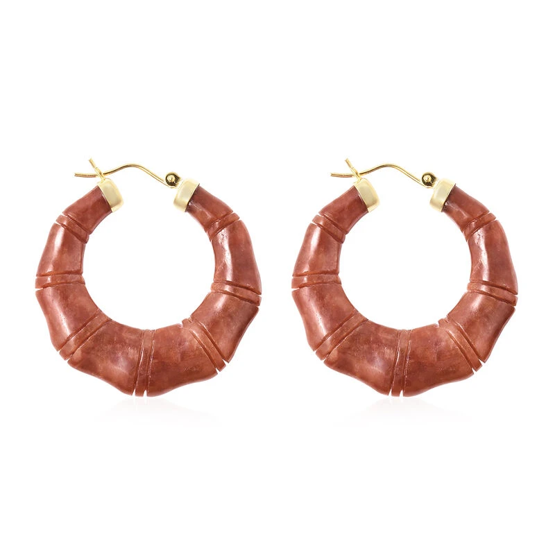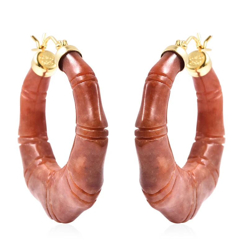 Rote Jade-Creolen, 925 Silber Vergoldet Ca. 81.50 Ct