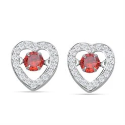 Rote Und Weiße Zirkonia Ohrringe In Herzform, 925 Silber Rhodiniert, Ca. 1.50 Ct