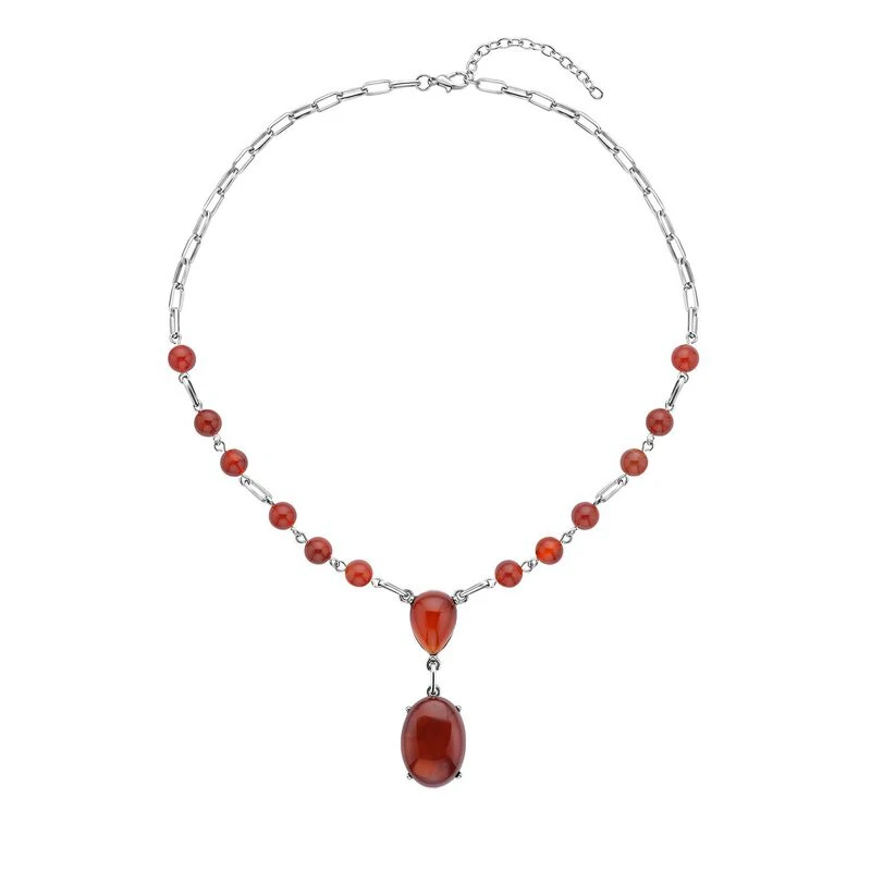 Rotes Achat Collier, Ca. 45 Cm, Silberfarben Ca. 70.00 Ct