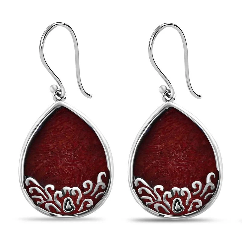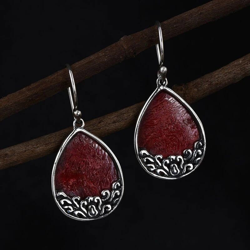Diese Korallenohrringe wurden von Hand gefertigt und verfügen über filigrane silberne Details. Mit einer Länge von 3,2 cm sind sie ein perfektes Accessoire für jeden Anlass.