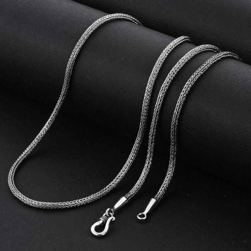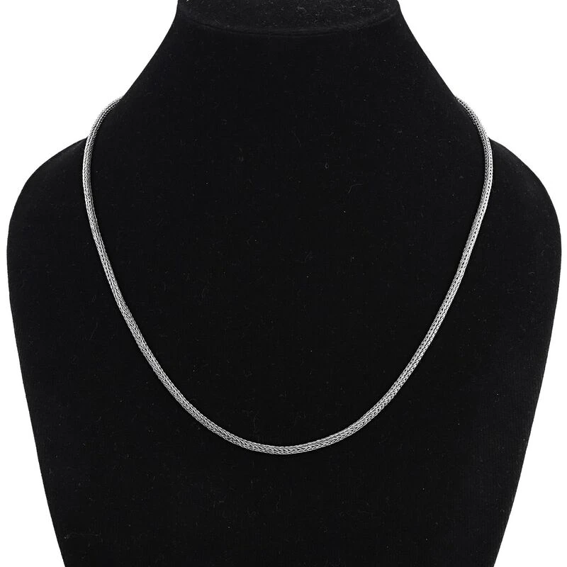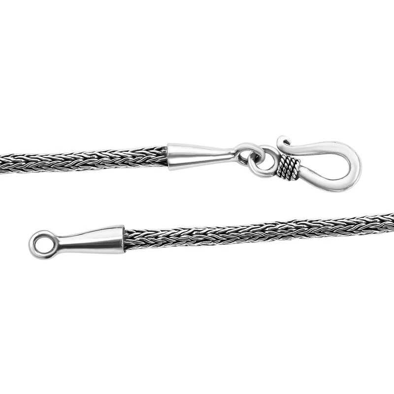 Tulang Naga ist die indonesische Bezeichnung für Drachenknochenketten und wird in der Regel aus dünnen Metalldrähten handgefertigt, die in einer komplexen, kompakten Symmetrie miteinander verwoben sind. Mit einem Hakenverschluss aus 19 Gramm Silber ist diese Kette robust und zeigt balinesische Kunstfertigkeit.