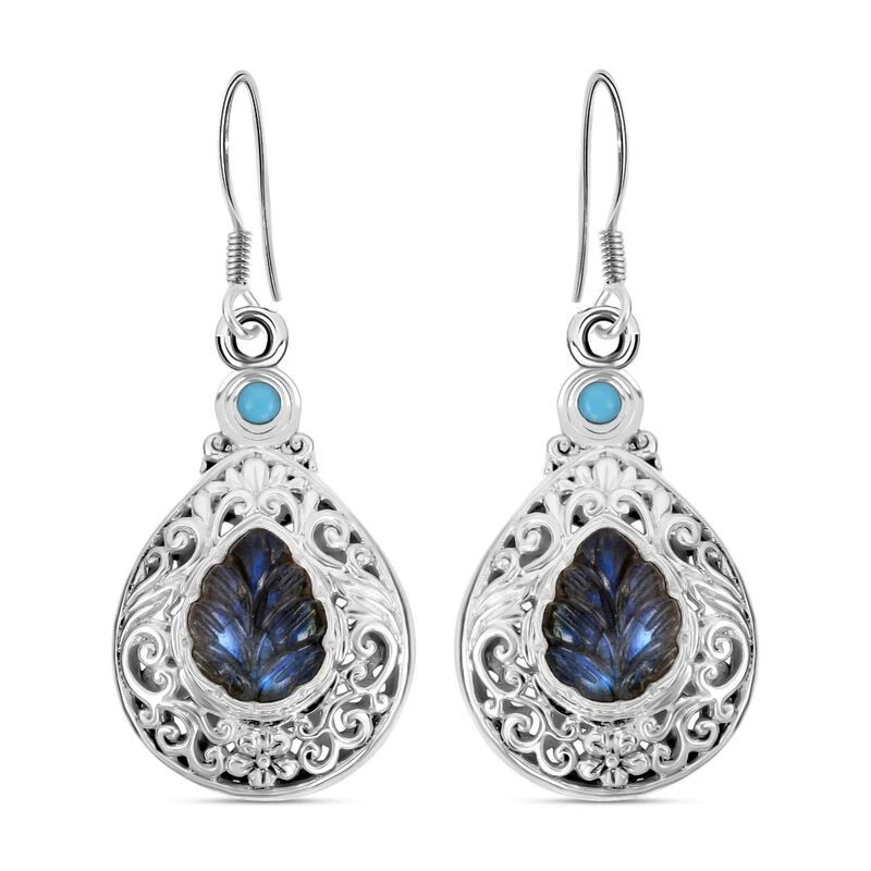 Royal Bali -Labradorit, Sleeping Beauty Türkis Ohrringe 925 Silber Ca. 10,44 Ct