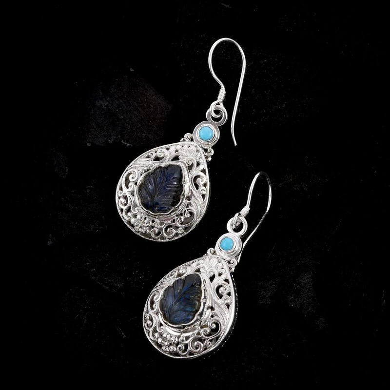 Ohrhänger mit 10,44 Karat Labradorit und Sleeping Beauty Türkis in 7,9g Silber. Sichern Sie sich schöne Ohrringe zu Top-Preisen, die einen luxuriösen Look versprechen.