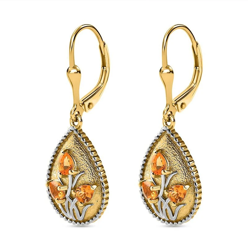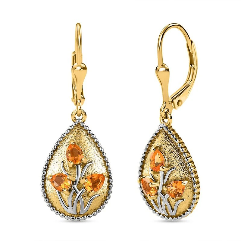 Salamanca Feueropal Ohrringe, 925 Silber Vergoldet Ca. 0.82 Ct
