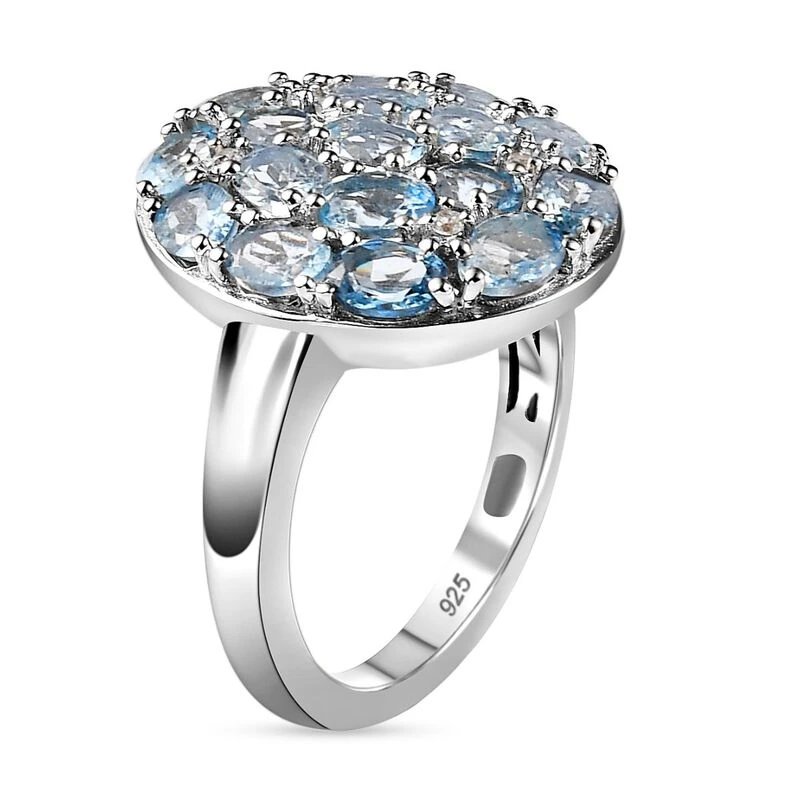 Cluster Cocktail Ring mit 2,69 Karat Santamaria Aquamarin und Zirkon in 4g platiniertem Silber. Die besten Designs zu Bestpreisen, haben Sie schon geshoppt?