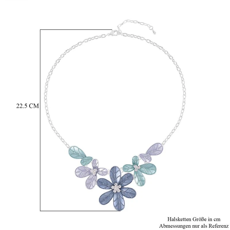 Diese in leuchtenden Farben emaillierte Halskette ist mit 13 Kristallen besetzt, die das Design mit ihrem Glanz erhellen. Die Halskette in Silberton ist mit einem Karabinerverschluss versehen.