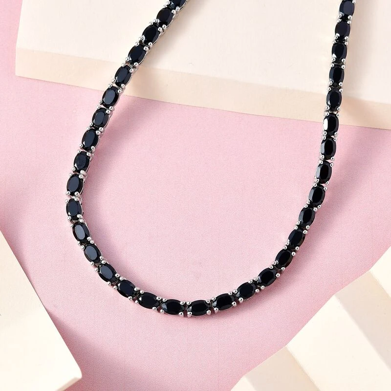 Schwarze Spinell Halskette, Ca. 45 Cm, 925 Silber Platiniert Ca. 41,75 Ct