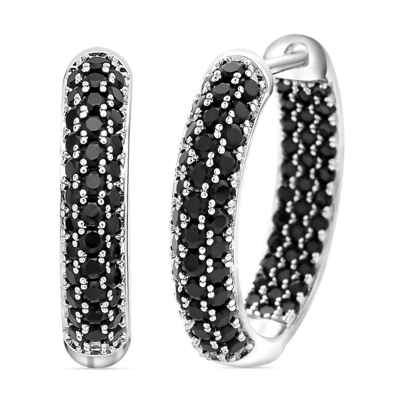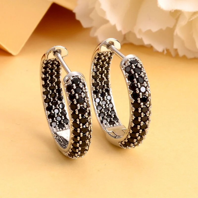 Schwarze Zirkonia-Creolen, Silberfarben Ca. 3,65 Ct