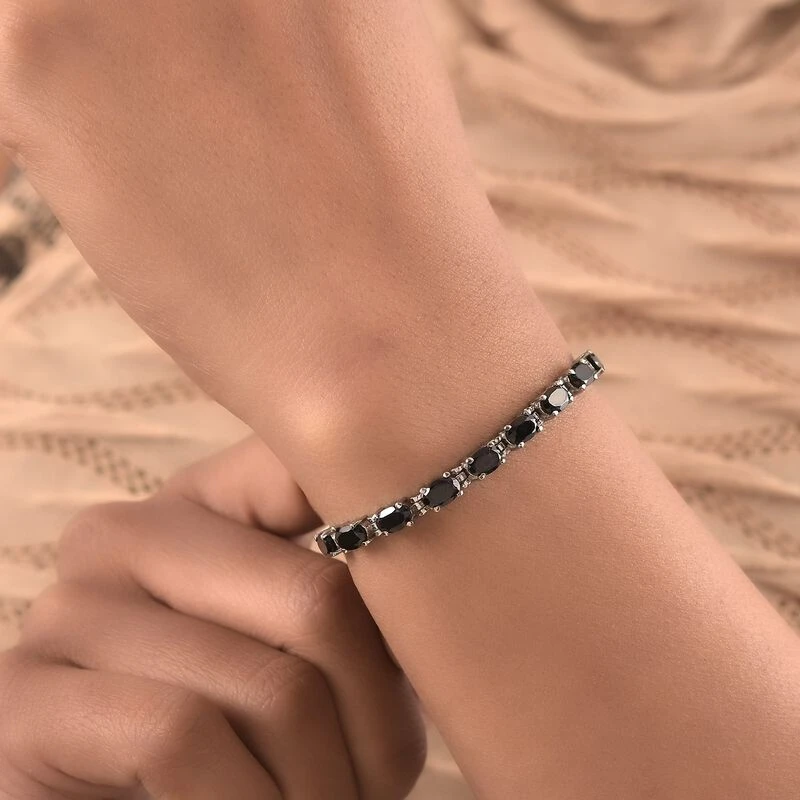 Schwarzer Spinell Armband Ca. 20 Cm Edelstahl Ca. 14,97 Ct