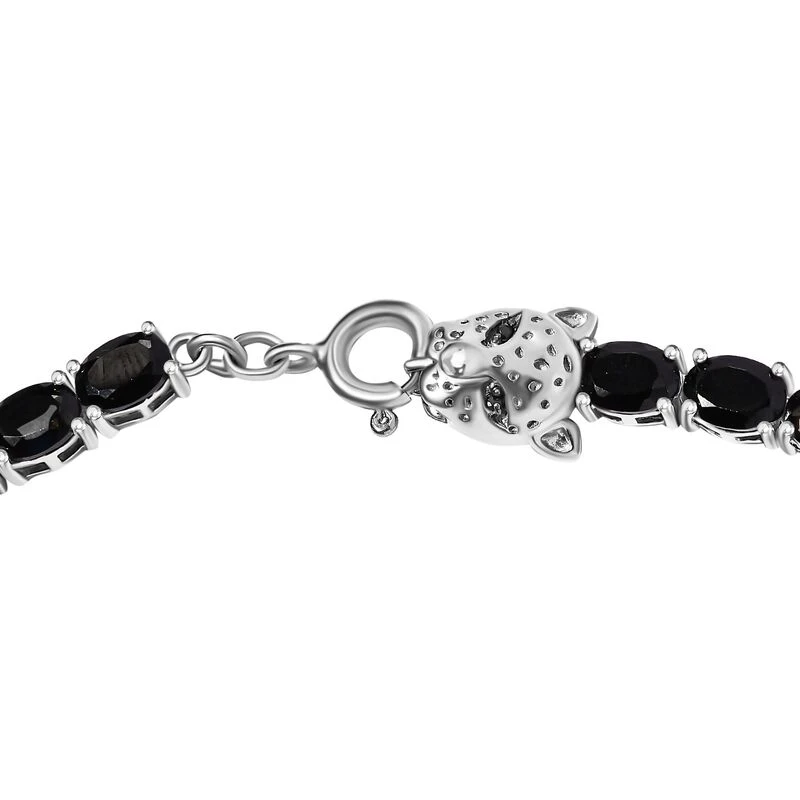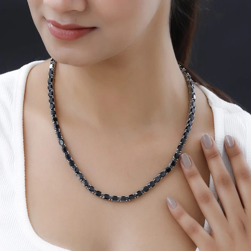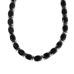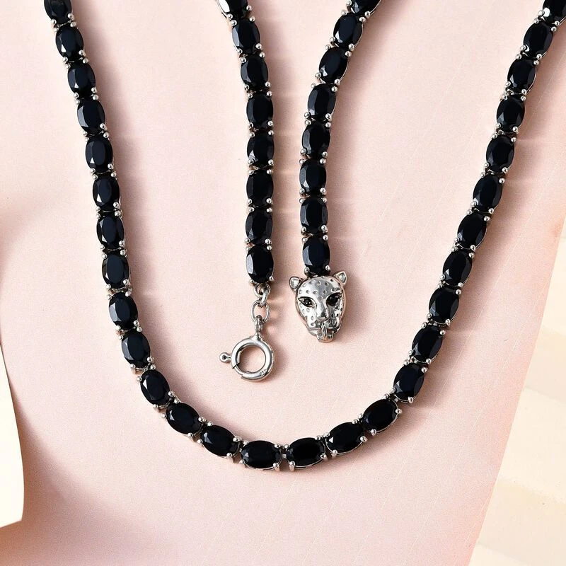 Schwarzer Spinell Halskette Ca. 45 Cm 925 Silber Platiniert Ca. 54.99 Ct