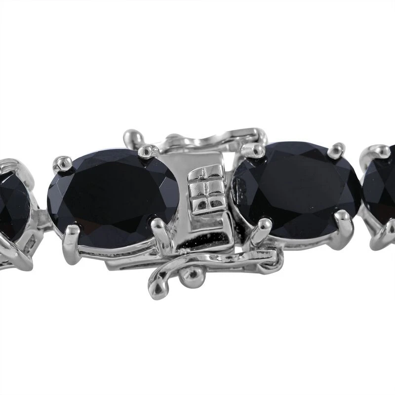 Schwarzes Spinell Armband, Ca. 20 Cm, 925 Silber Platiniert Ca. 47,30 Ct