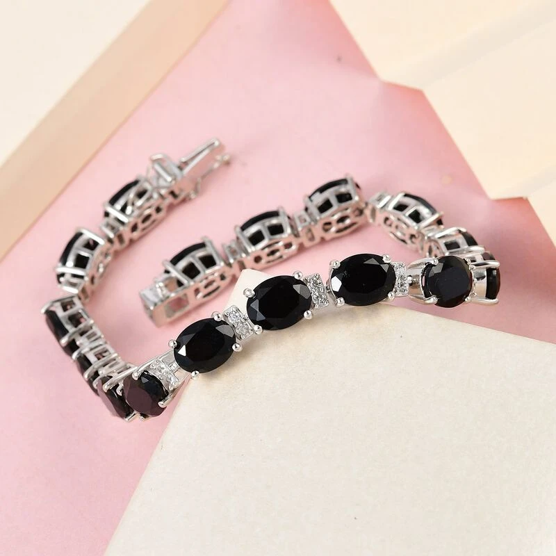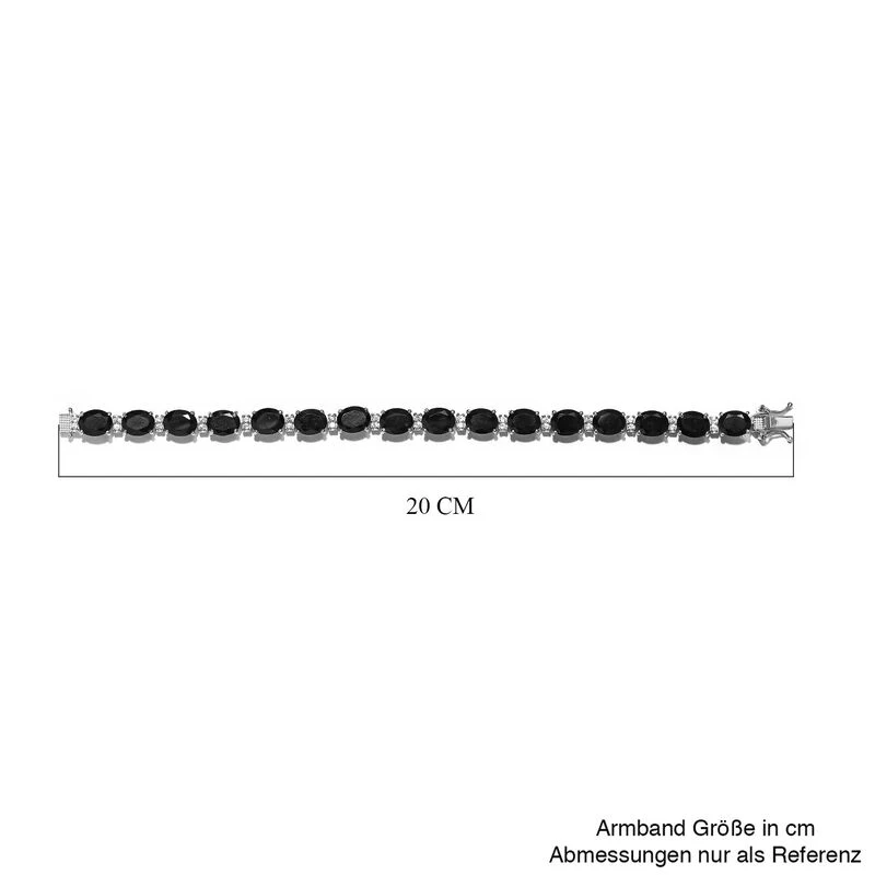 Schwarzes Turmalin Und Weißes Zirkon Armband, Ca. 19 Cm, 925 Silber Platiniert Ca. 30.56 Ct