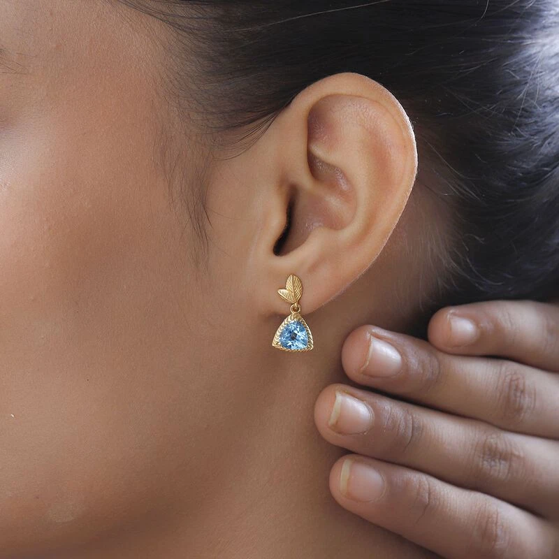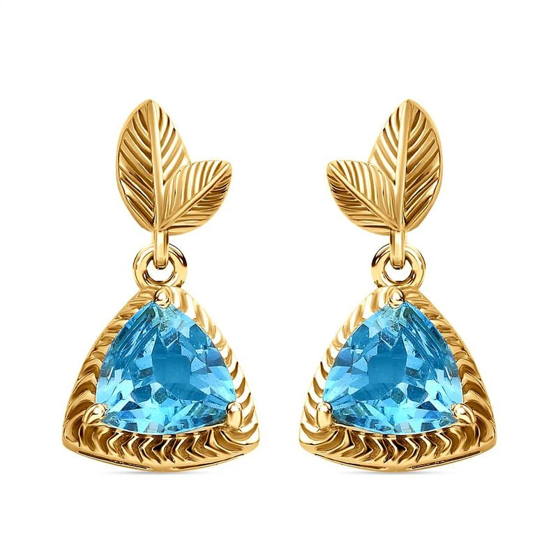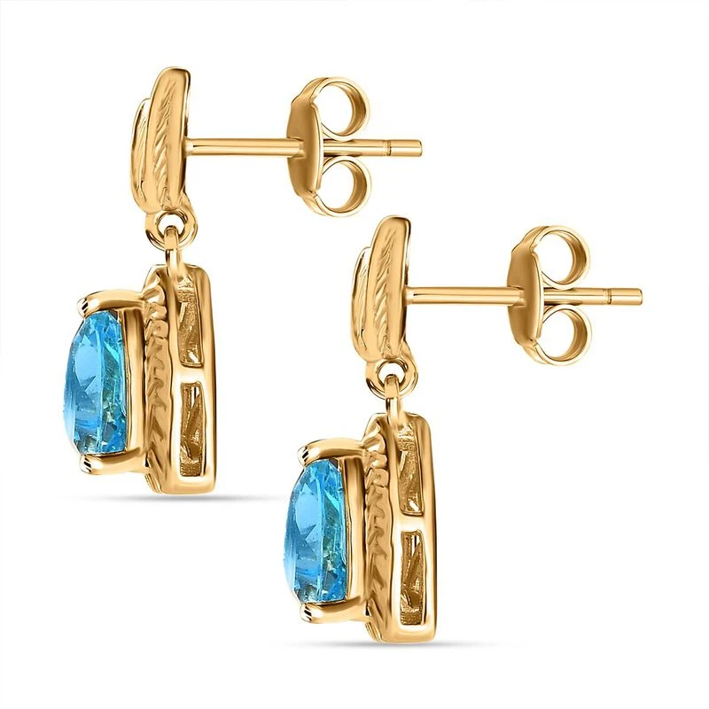 Schweizer Blautopas Ohrringe 925 Silber Gelbgold Vermeil Ca. 2,68 Ct.