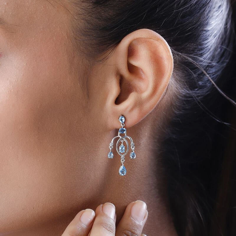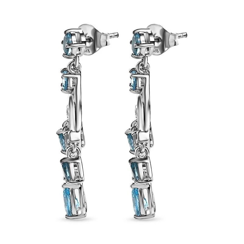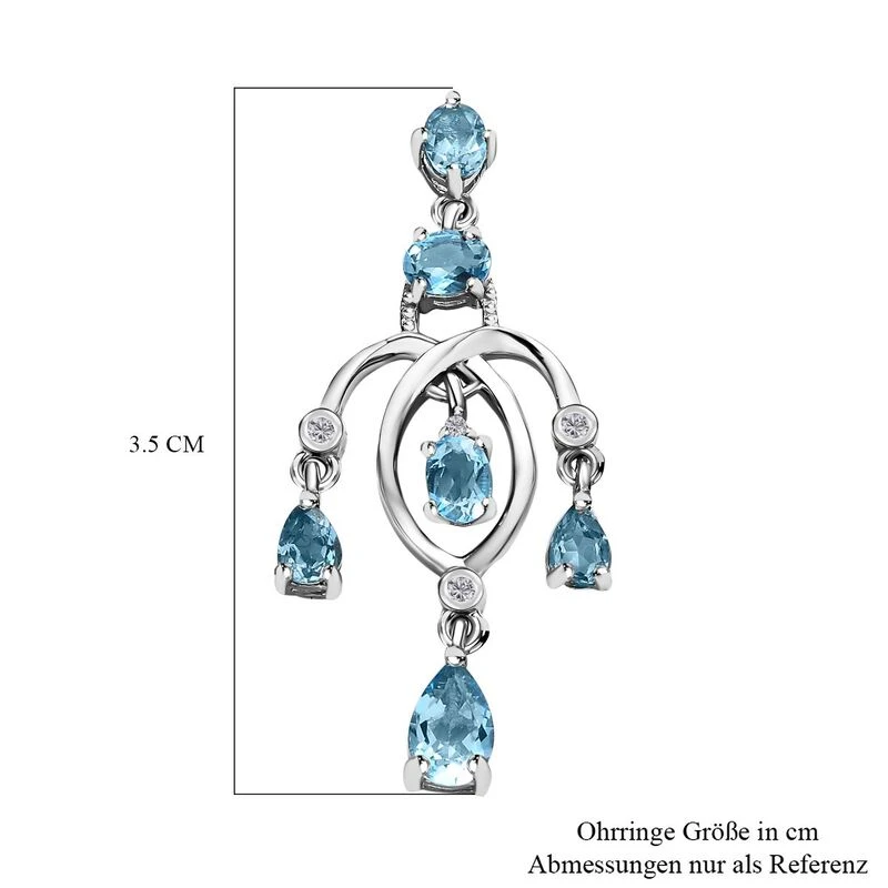 Schweizer Blautopas Ohrringe, 925 Silber Platiniert, Ca. 2.78 Ct