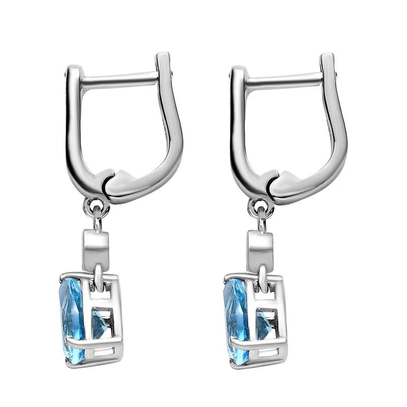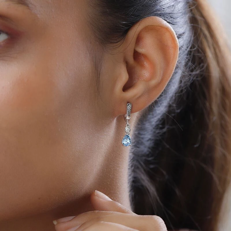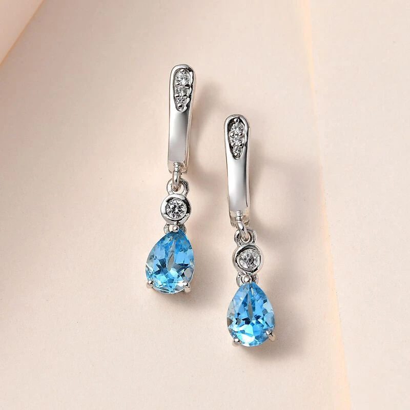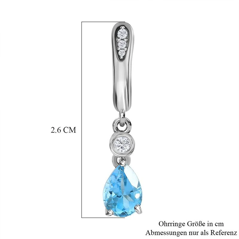 Schweizer Blautopas, Weißer Zirkon Ohrringe, 925 Silber Platiniert, Ca. 1.85 Ct