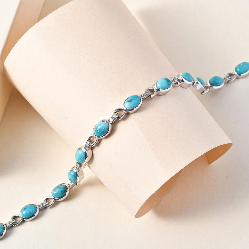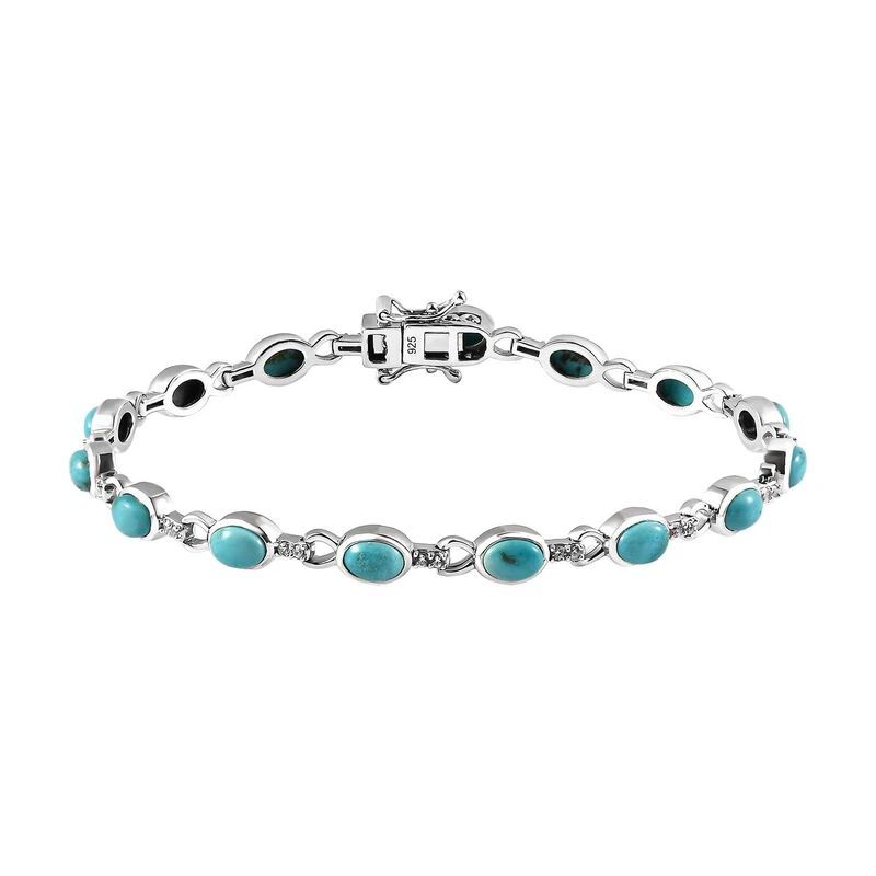 Sierra Nevada Türkis Und Eißer Zirkon Armband, Ca. 20 Cm, 925 Silber Platiniert Ca. 8.37 Ct